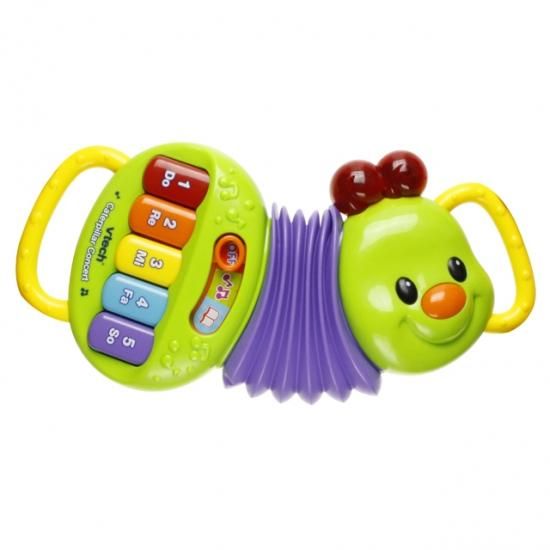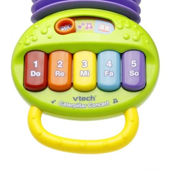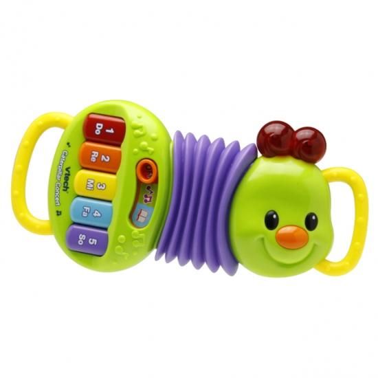 ピカピカ光るアンテナやピアノの鍵盤、いも虫くんのお鼻のボタンがとっても楽しくしてくれます。